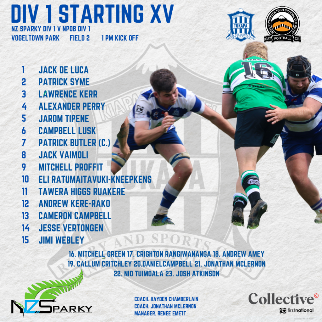 Well that’s enough from me for this week. Be sure to come up to Tukapa for a beer and watch our Womens team at 6.30pm Friday night then over to NPOB on Saturday, See you there.