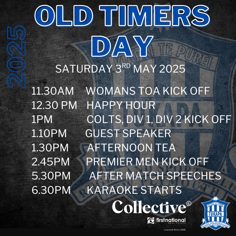 This Saturday is Old Timers Day, and we want the club buzzing from morning to night. Give your old rugby mates a ring and get them down to Tukapa—it’s the perfect chance to reconnect, share a yarn or two, and enjoy a full day of community and rugby.