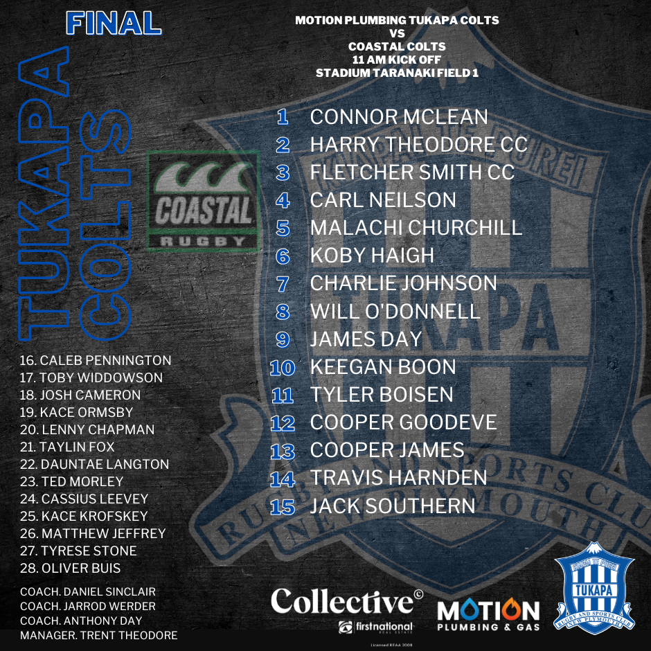 On behalf of the whole Colts group, thank you to the wider Tukapa whānau — the club, the sponsors, the supporters. Your backing has meant everything. Our success is your success, and we’ll give it our all to make you proud.