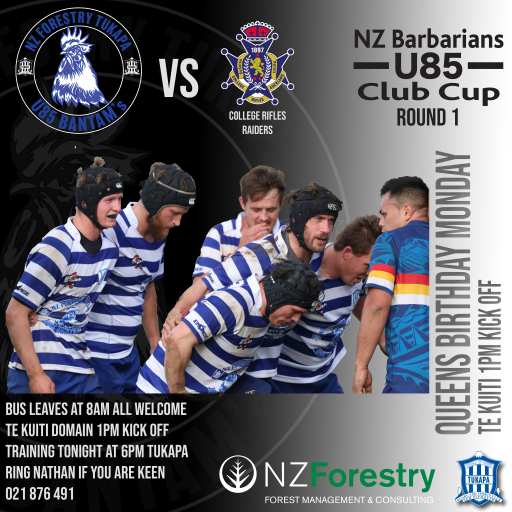 On Monday we have a doubleheader with round one of the NZ Under 85’s cup with our Bantams jumping on the bus and heading to Te Kuiti for a 1pm kick-off at the Meads Stadium. Again this team has been hit with a fair bit of covid and injuries but we have managed to dig a few players out of the woodwork and now have a strong lineup heading to Te Kuiti. If you are keen to jump on the bus please get in touch with someone within the team so we make sure we have enough seats. Go well Bantams, show us that fight that you showed last year. Big thank you to Cam from NZ Forestry for coming on board as naming rights sponsors again.
