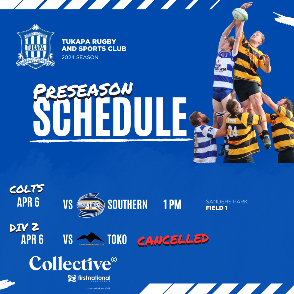 Unfortunately the Div 2 clash with Toko has been cancelled but you can still come along and watch the Colts play Southern. All club facilities will be operating.