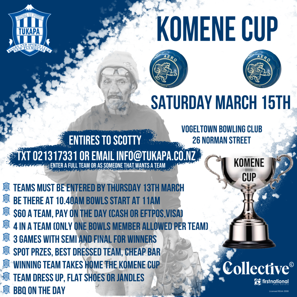 Our first social event of the year is just around the corner! We want to fill the greens for our old mate Rangi and the Komene Cup, so get your teams together and send your entries to me at 021317331.