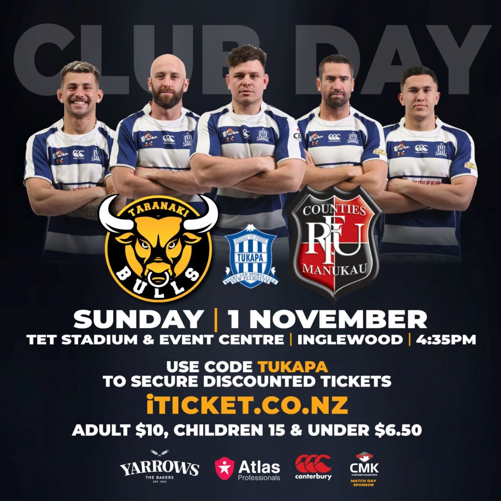 Club members who wear their club jersey to the Yarrows Taranaki Bulls v Counties Manukau match will be in to win Yarrows Taranaki Bulls merchandise.